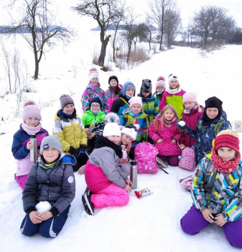 Za krásného zimního počasí jsme se ve čtvrtek 18. února vydali na vycházku do zasněženého lesa s cílem navštívit krmelec a zvířátkům donést něco na přilepšenou. Krmelec jsme doplnili senem, jablíčky, mrkví, kukuřicí, žaludy, kaštany a suchým chlebem. Cestou jsme měli štěstí a v dáli jsme zahlédli stádo srnek. Pobyt v krásné zimní přírodě jsme si užili a do školy jsme se vraceli s dobrým pocitem, že jsme pro naši přírodu něco udělali.