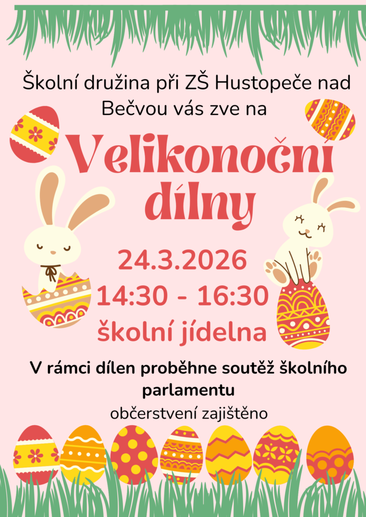 Velikonoční dílny ve ŠD 16 března, 2026 Kategorie: Aktuality, Školní rok 2025/2026 Komentáře nejsou povolené u textu s názvem Velikonoční dílny ve ŠD